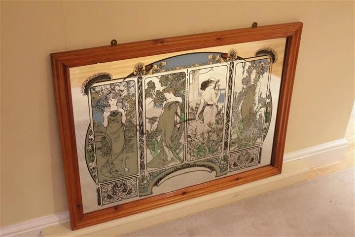 Whilst this has been going on, I’ve been visiting various Antiques and Collectables fairs around the Hampshire, Berkshire and Surrey area, ranging from small village halls to large Sports Halls, looking for things to complement the look I’m going for. There are probably too many to mention here but notable purchases include a gorgeous Tiffany-style butterfly lamp and a mirror featuring artwork by Alphonse Mucha. I also bought a cheap table lamp also in a Tiffany style to use as a bedside lamp.